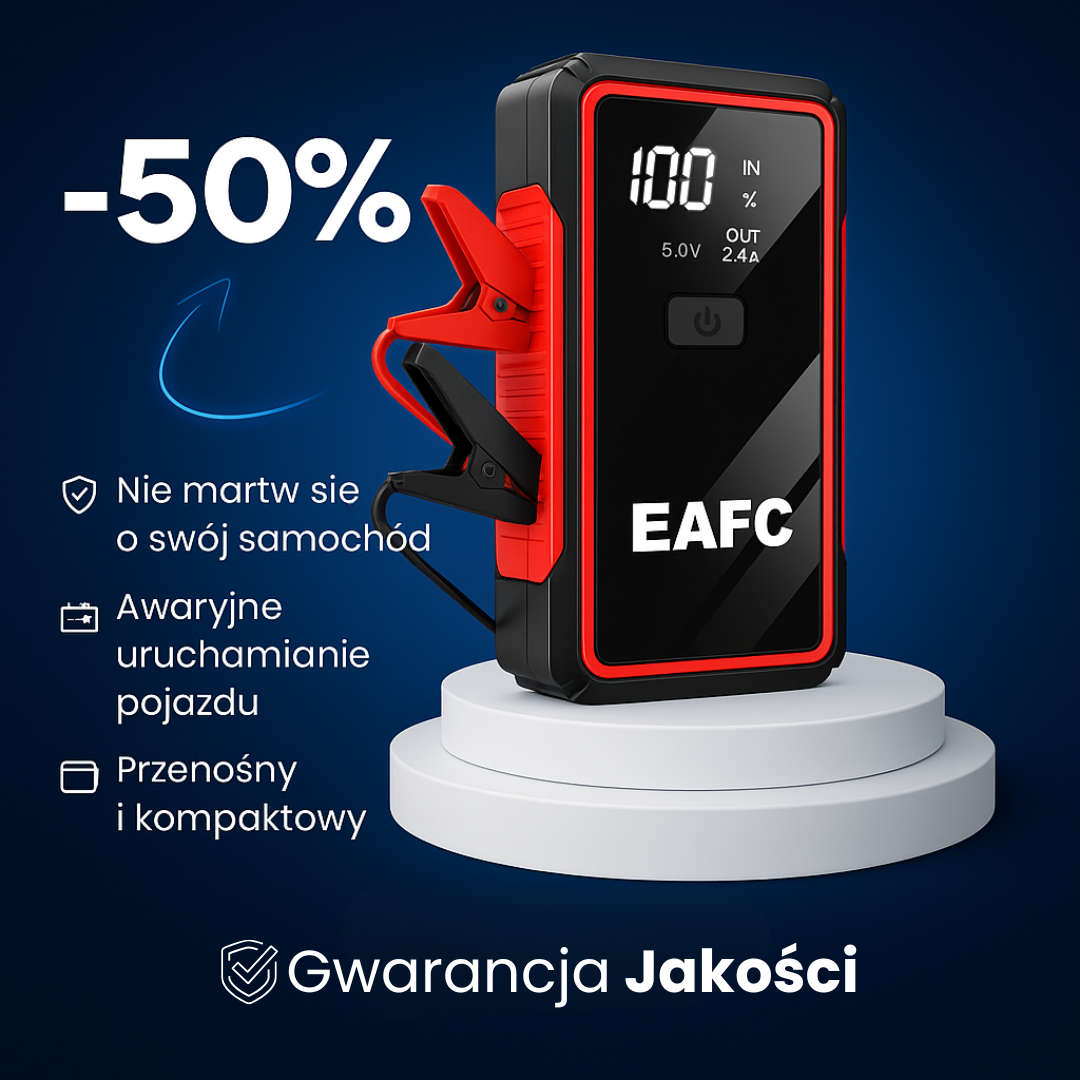 Urządzenie działa jak przenośny rozruch samochodu. Podłącz kable do akumulatora, uruchom pojazd — gotowe. Cały proces trwa kilka sekund.